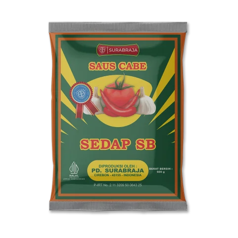 Saos Cabe Sedap SB kemasan bantal yang dibuat dari bahan-bahan yang terpilih dan mutu terjamin. Juga dikerjakan oleh tenaga yang berpengalaman, rasanya enak dan wangi. Cocok untuk pelengkap makananan seperti bakso, mie ayam, gorengan dan lainnya. Nomor