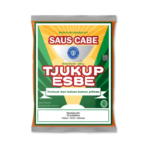 Saos Cabe Tjukup Esbe kemasan bantal dibuat dari bahan pilihan yang berkualitas, yang langsung dipetik dari kebun, dan diolah oleh tenaga yang berpengalaman. Cocok sebagai pelengkap untuk makanan seperti bakso, mie ayam, mie goreng aceh dan lainnya. No